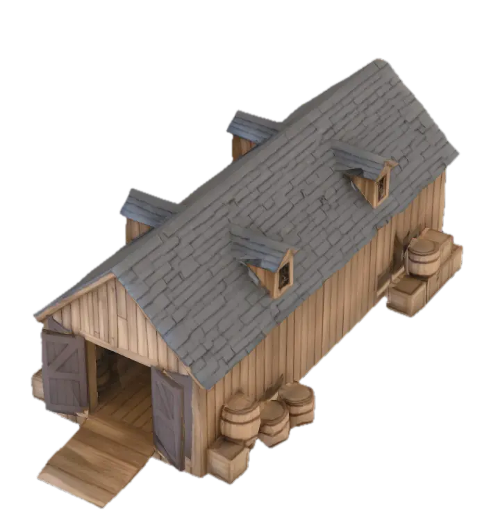 The artist's impression of the warehouse was used to guide a generative AI tool to create a 3D model.