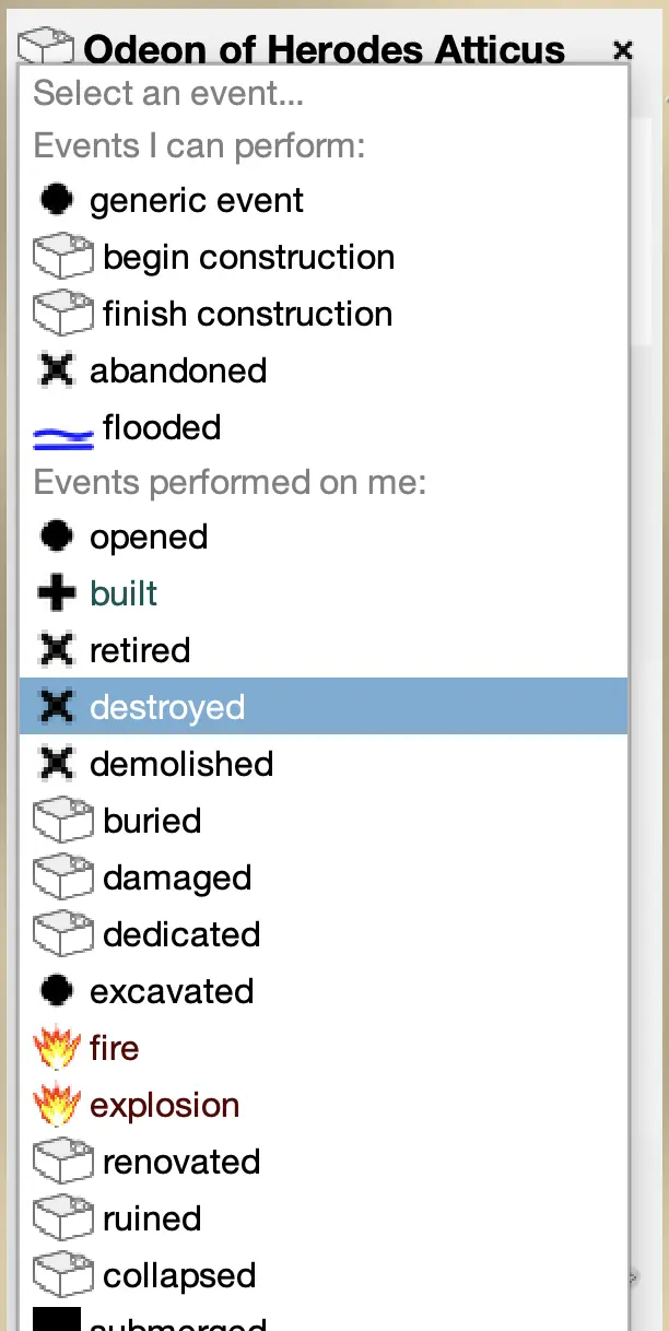 event and exists factoids to set the building's timeline. Add events